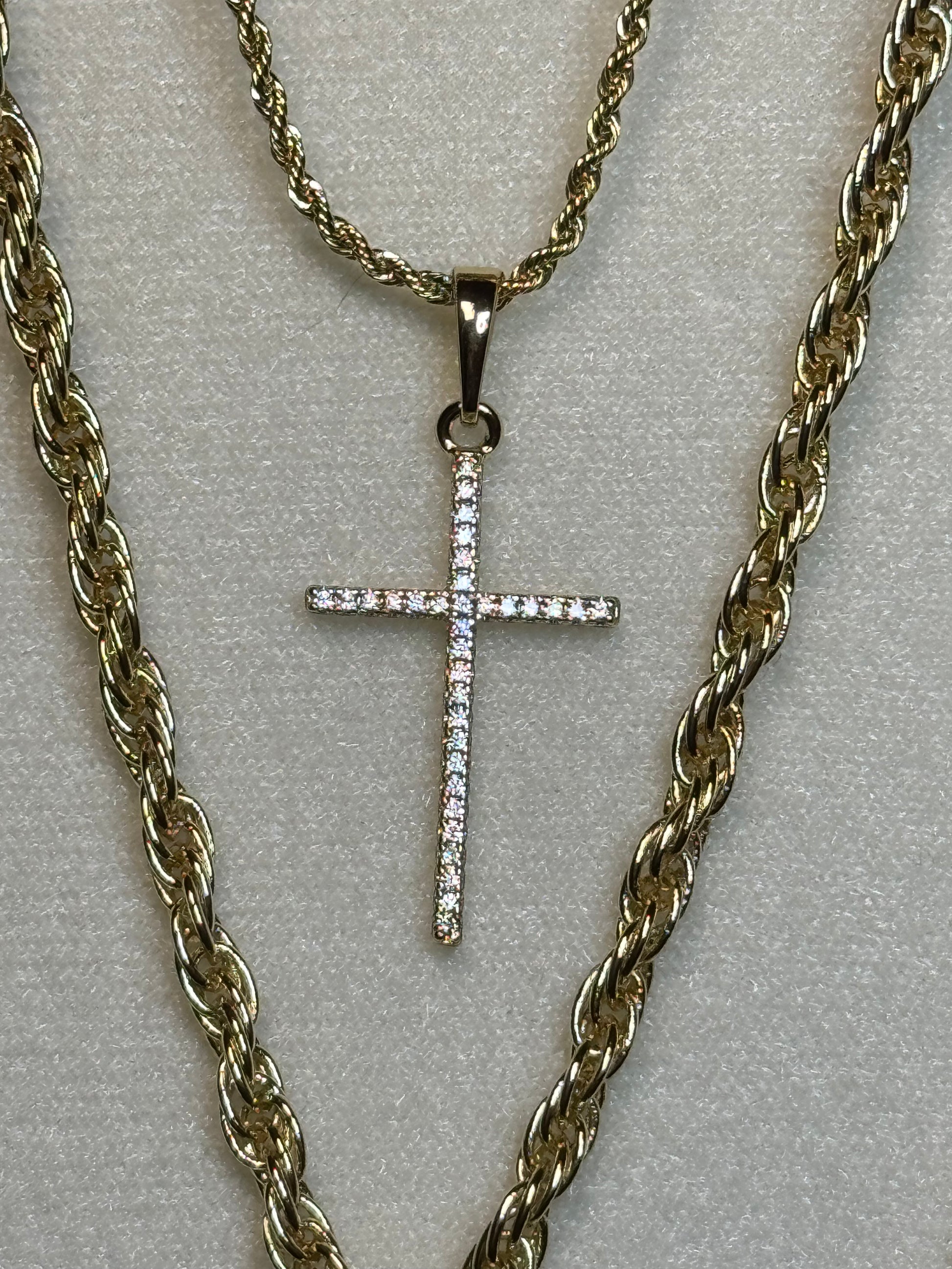 Timeless and refined. This gold cross necklace is delicately adorned with sparkling cubic zirconia stones for a touch of elegance and shine. Its minimalist design makes it perfect for layering or wearing solo as a meaningful everyday piece.